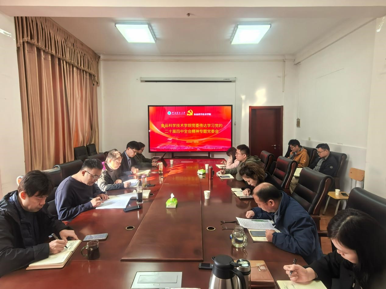 会议要求,学习党的二十届四中全会精神,主要任务是深入领会全会精神实质,结合学院实际研究部署贯彻落实工作,切实把思想和行动统一到党中央决策部署上来。一要提高政治站位,深刻领会全会的重大意义和核心要义;二要聚焦主责主业,把全会精神转化为学院发展的生动实践。要以全会精神引领学科与人才培养升级,驱动科研创新与社会服务,夯实党建与治理基础;三要加强组织领导,在全院迅速掀起学习贯彻全会精神热潮。