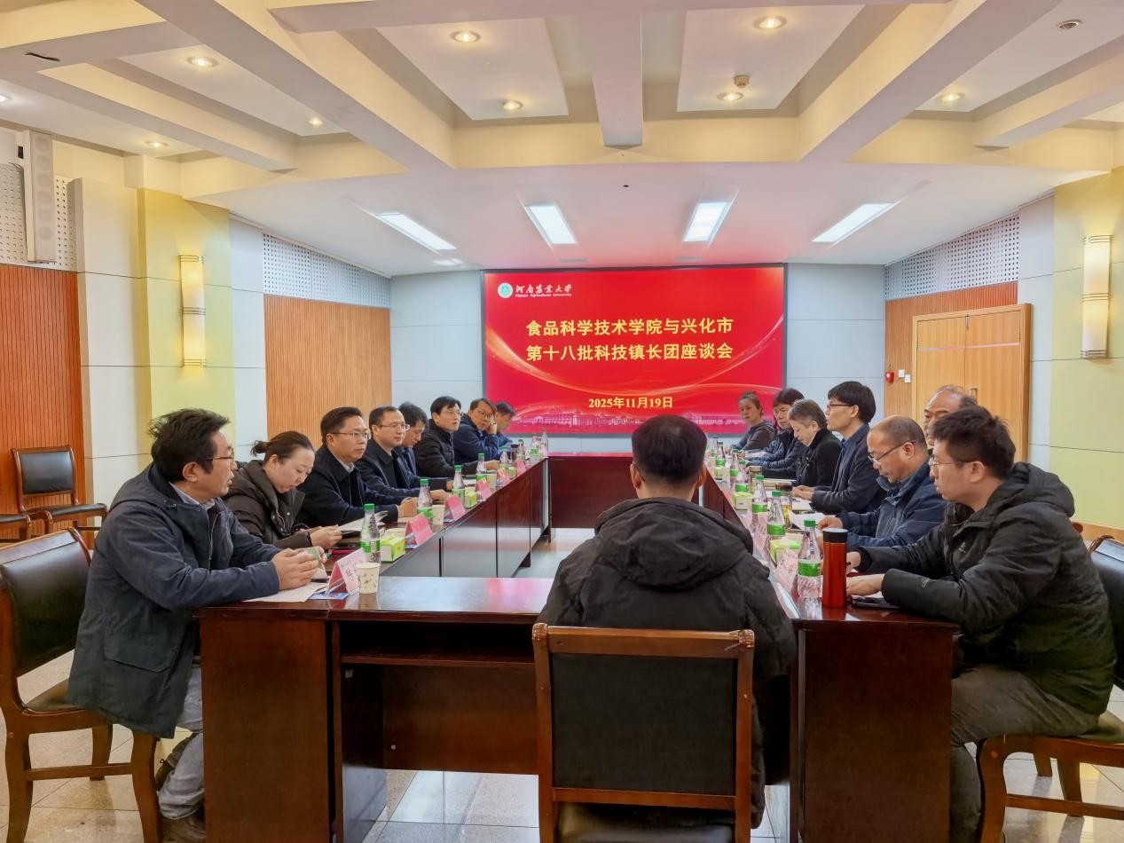 ,开展合作回访与深度对接。学院党委书记吴旭静、院长黄现青等领导班子成员、系室主要负责人及兴化市第十八批科技镇长团挂职教师出席会议。座谈会由院长黄现青主持。
