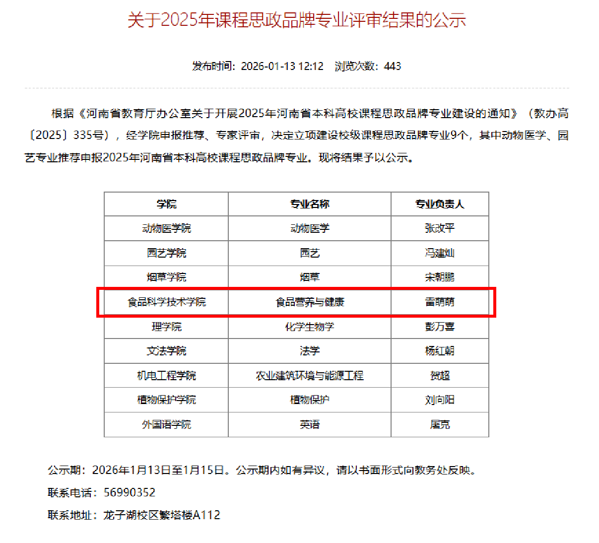 (通讯员 海丹)2026年1月13日,食品科学与技术学院食品营养与健康专业凭借扎实的建设基础、鲜明的思政特色和突出的育人成效,成功入选2026年做爱自拍