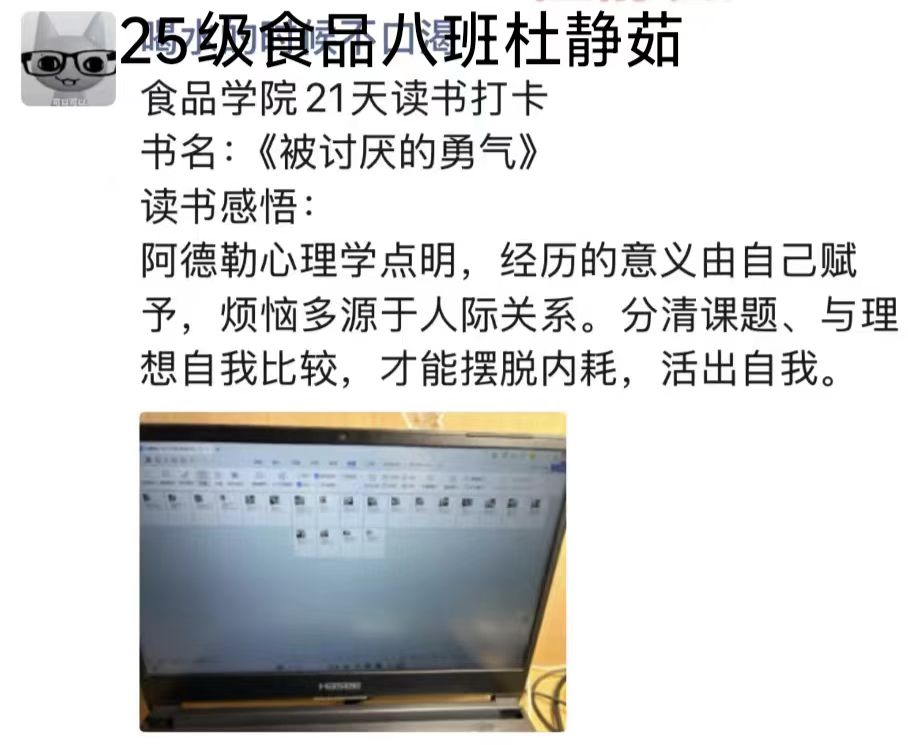 (通讯员 王蕊)为持续推进校园阅读文化建设,帮助同学们在文字中拓展认知、涵养品格,做爱自拍 学生会开展“21天读书打卡”活动。