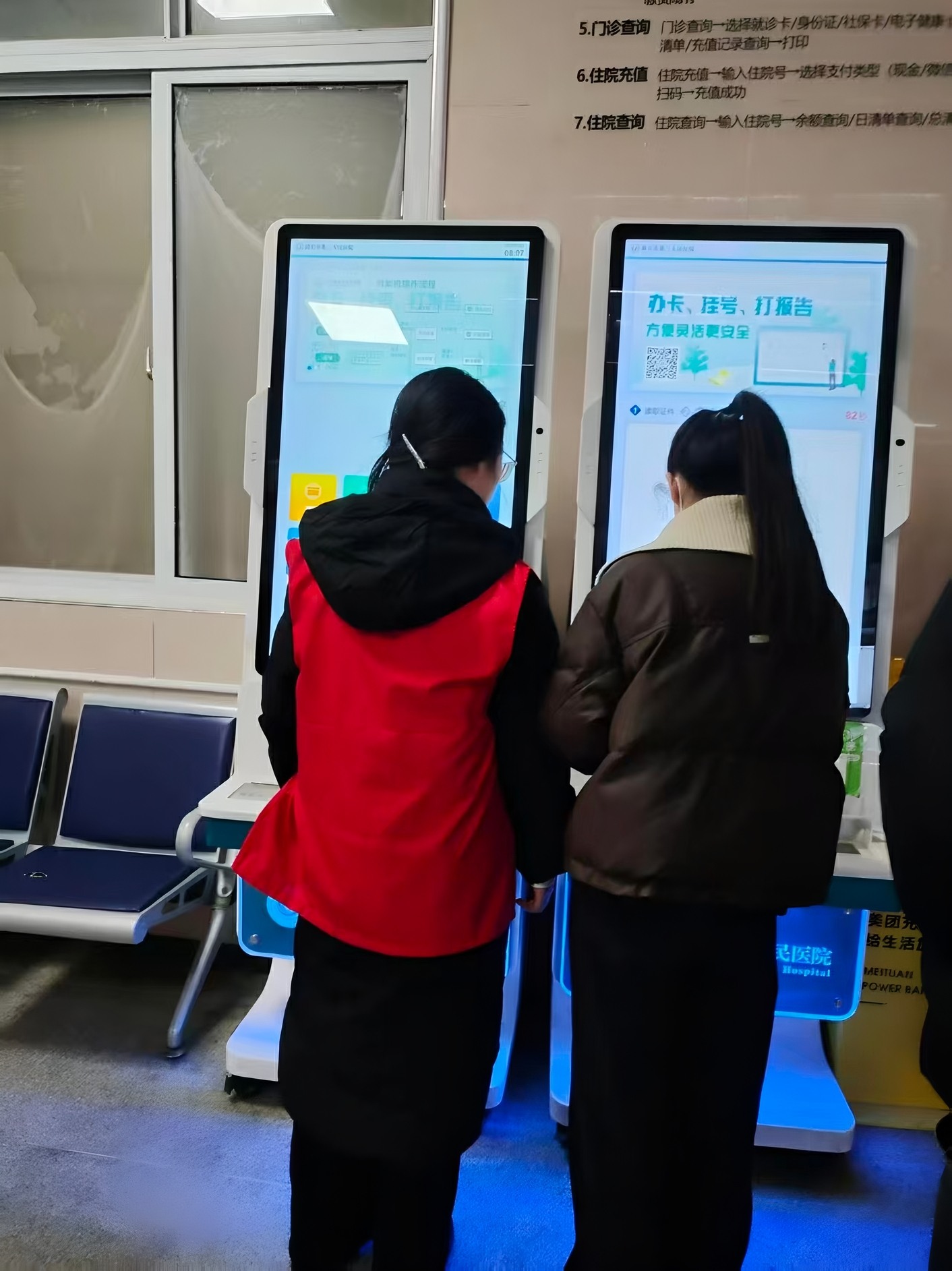 实践初期,王欣怡主要负责协助患者操作自助设备,完成挂号、缴费及报告打印等流程。面对陌生界面与患者急切的目光,她坦言起初倍感压力,但通过反复练习与主动请教,迅速掌握操作要领,逐渐从容应对各类需求。