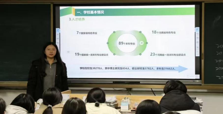 美丽的校园风光、丰富多彩的社团活动、先进的科研设施一一呈现,瞬间点燃了在场学子对大学的向往之情。随后,团队成员从学习概况、招生情况、就业创业以及校园生活等多个方面,全面介绍了学校百余年的办学底蕴,深入解读“厚生丰民”的办学理念与“明德自强 求是力行”的校训内涵,并用一个个生动案例让学弟学妹沉浸式感受农大魅力。