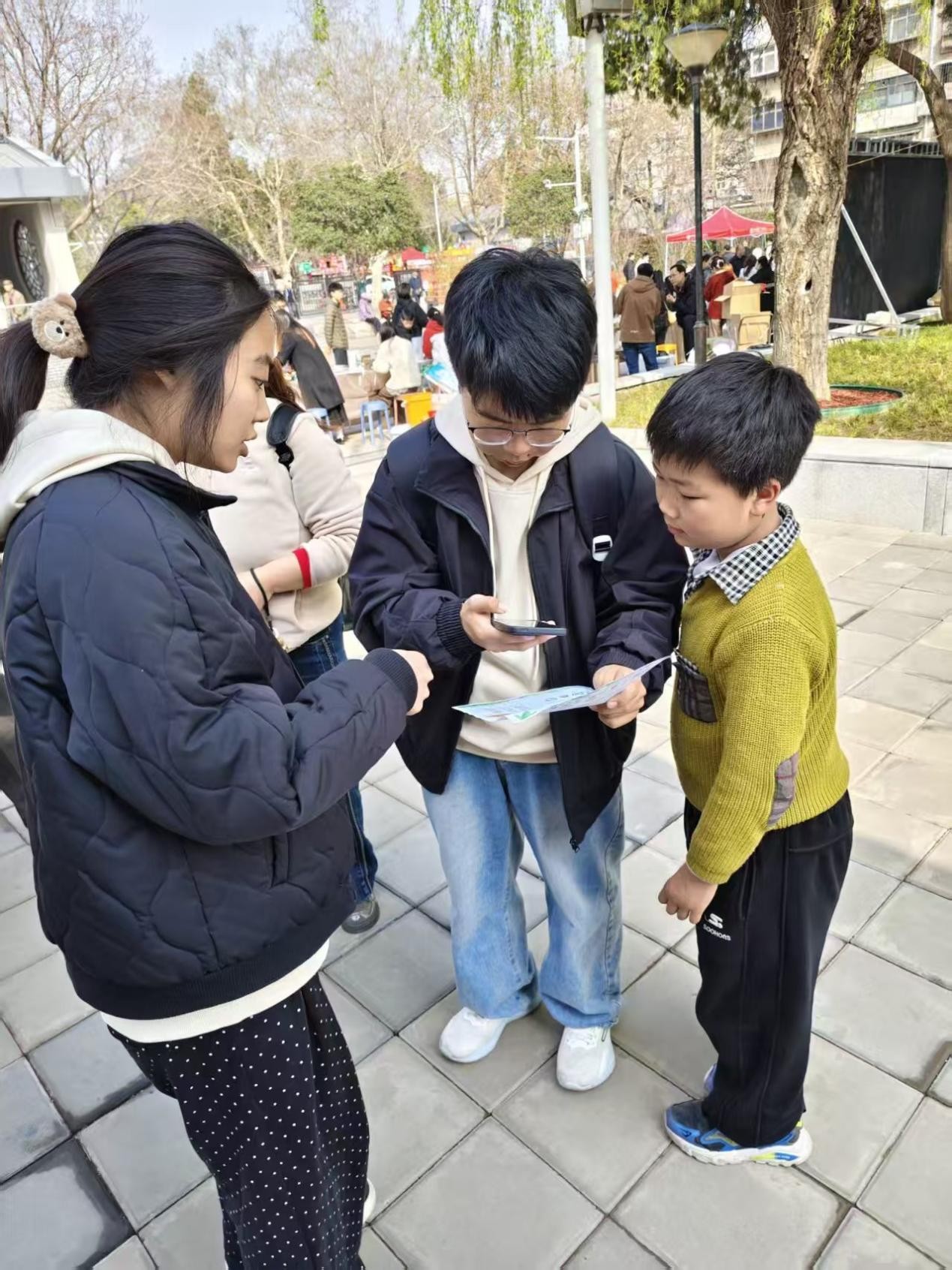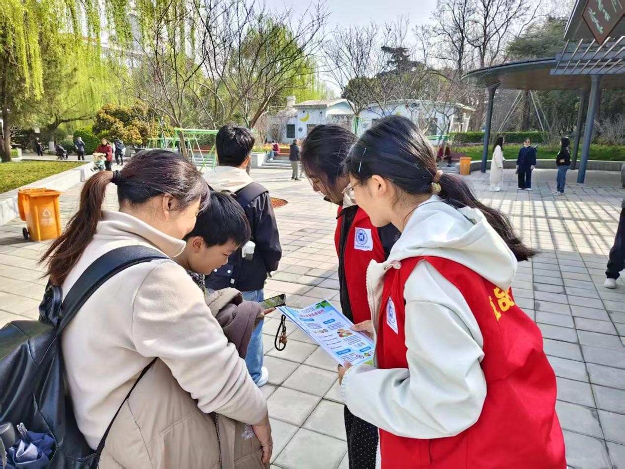 张秋会教授,于3月21日带领2026河南省科学技术协会i科普项目团队教师和“食安强国”社会实践团队的同学们,走进紫荆山公园,开展以“食安守护·健康同行”为主题的社会实践活动,为市民广泛普及食品安全知识,凝聚共识,激活社会共治能力,切实提升公众健康素养。