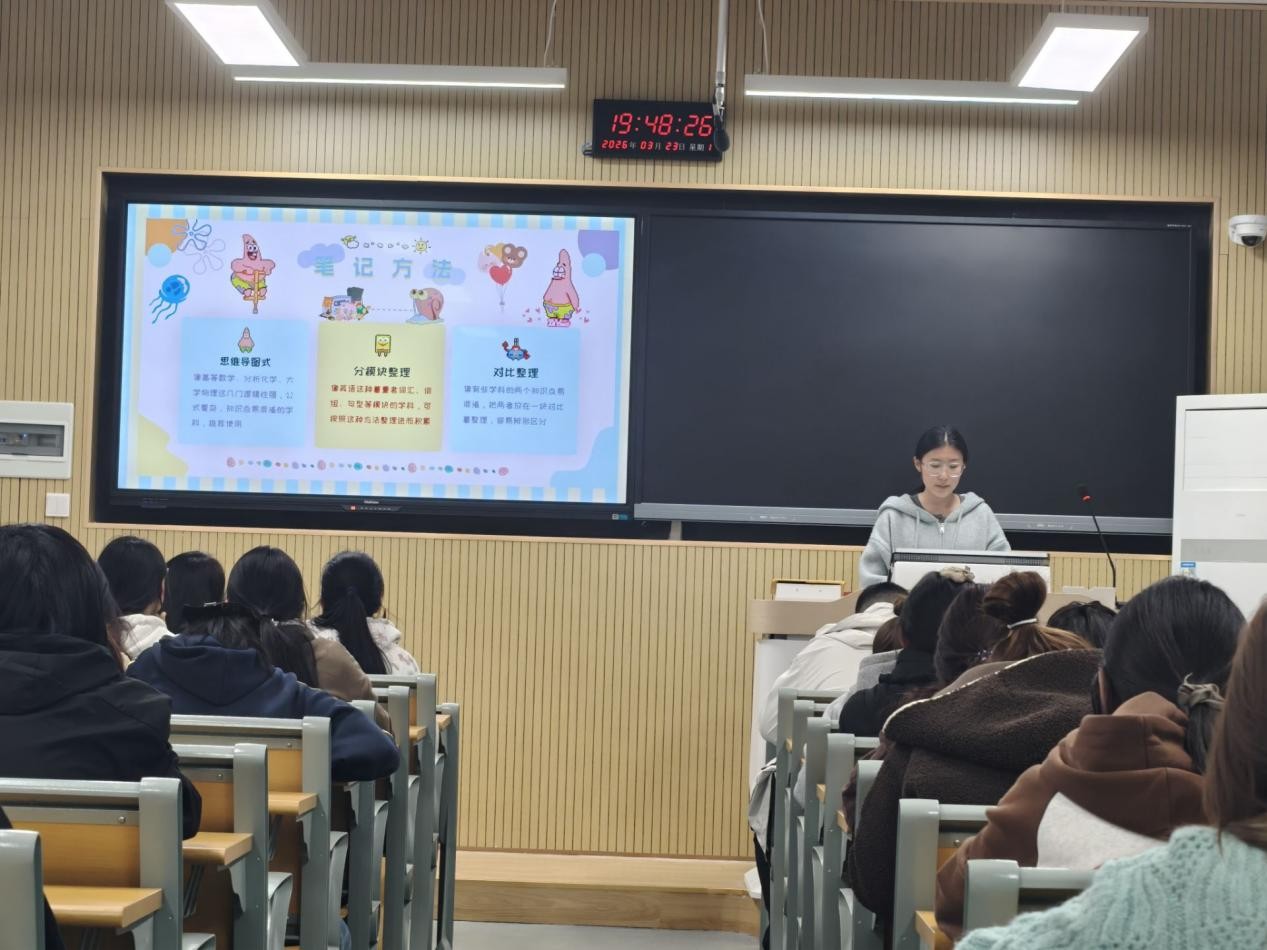 在“学霸笔记”评选环节,参赛学生依次登台展示课堂笔记,分享学习方法。笔记逻辑严谨、条理清晰,充分运用康奈尔笔记法、思维导图等方式,实现专业知识体系化梳理与自主思考有机融合。“学霸宿舍”评选中,各宿舍代表围绕集体学习氛围、互助共进机制、学科竞赛参与、科研实践成果等进行展示,通过常态化集体自习、精准化学业帮扶、多元化能力提升,形成“比学赶帮超”的良性互动格局。“学霸班级”评选采取材料评审方式,评委组围绕学业成绩、获奖成果、学风建设活动成效、英语四六级通过率、考研升学等核心指标综合量化打分。
