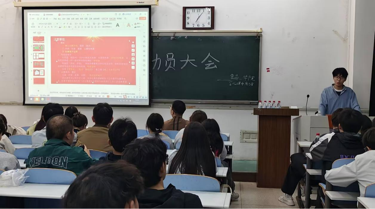 在工程楼107教室召开运动员动员大会。学院辅导员张雨、学生会文体部成员及全体参赛运动员参加会议。