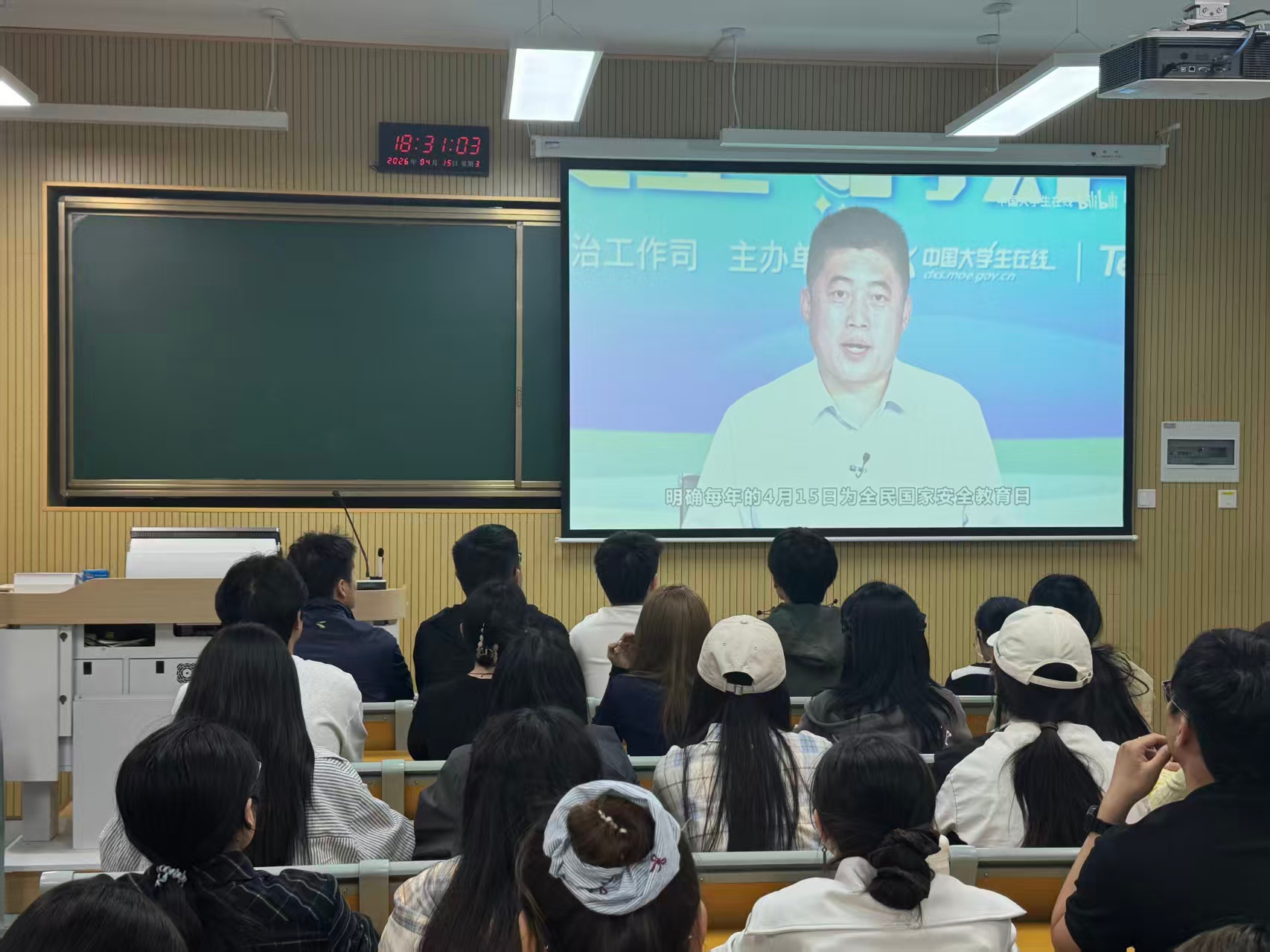 4月15日上午,学院组织学生集中观看全民国家安全教育日启动仪式直播。同学们认真聆听,深入学习领会总体国家安全观的核心要义,充分认识到国家安全与个人成长、社会稳定紧密相连。