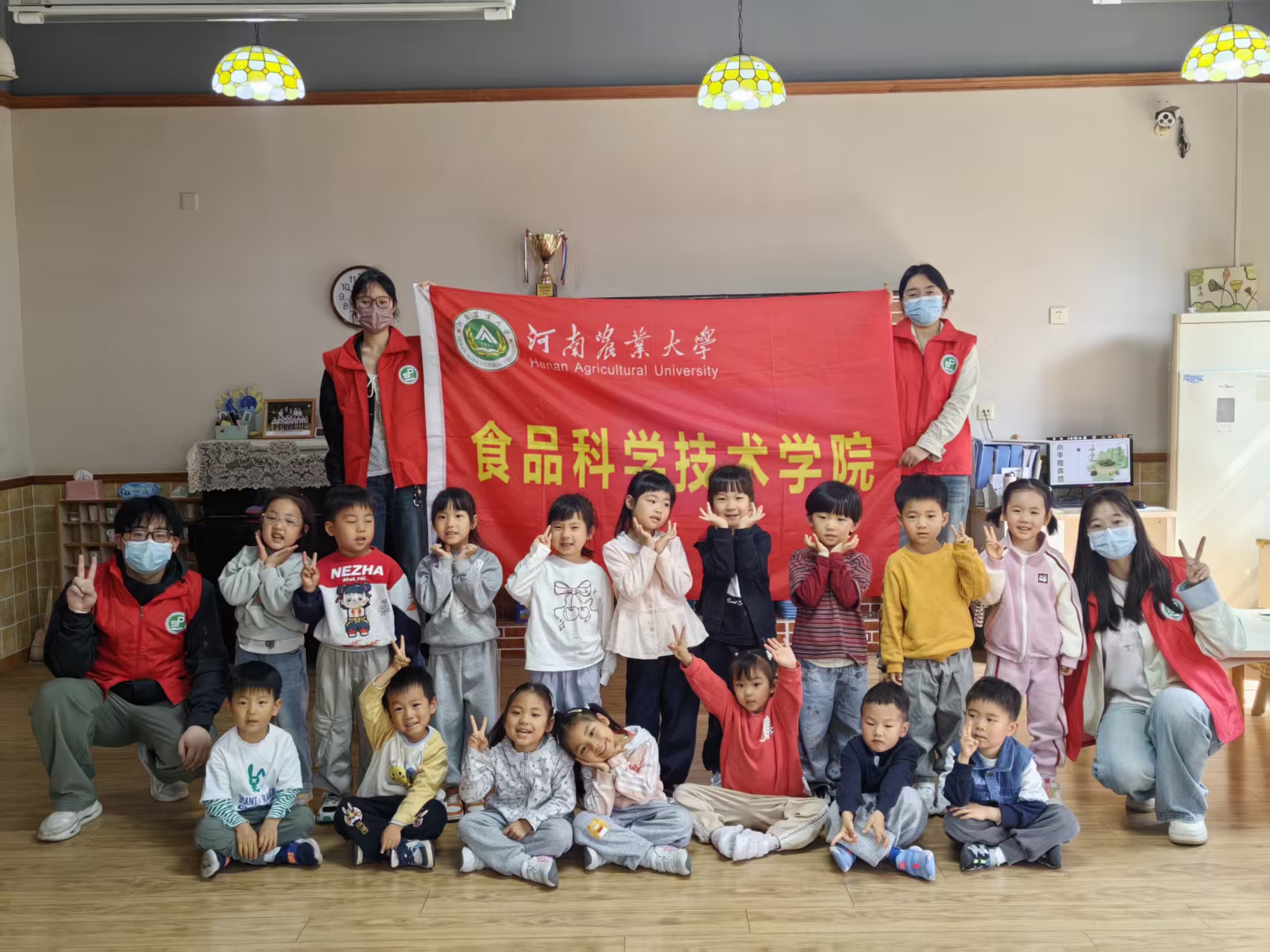 组织营养协会、4C双创协会及学生志愿者,走进郑州市金水区建业贰号城邦幼儿园,开展食安科普进校园志愿服务活动。
