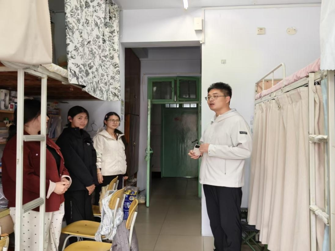 (通讯员  刘亿元  王怡帆)为筑牢宿舍安全防线,保障学生人身与财产安全,近日,院团委书记张金龙、正科级组织员陈翔、团委副书记丁明明、辅导员张雨及各班主任深入学生宿舍,开展安全排查行动。